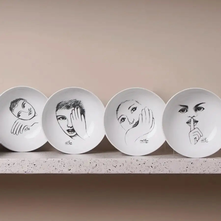 The Sketchbook Mixed Set - heritage Soup/Cereal Bowl Set of 4 showcases Carrol Boyes’ signature hand-drawn figures - Face Facts, Let’s Face It, Distant Memory, and Just a Minute. Designed to stir conversation and elevate the everyday. Microwave and dishwasher safe.