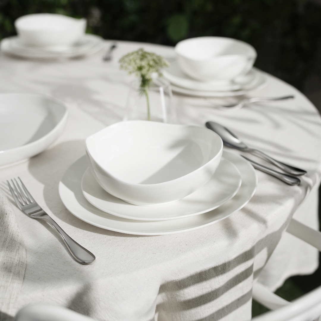 A timeless set of bowls from our minimalistic Organics range. The distinct floating forms were originally hand-sculpted by Carrol. Use these bowls to serve a variety of dishes. Capacity: 400ml.
