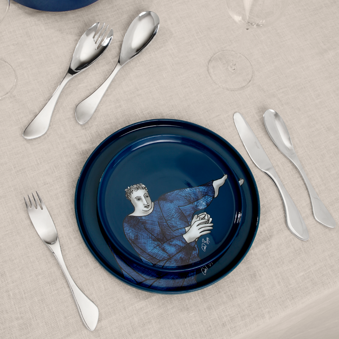 Introducing the Indigo Blues collection, a captivating ensemble of dinnerware that transforms every meal into a whimsical affair. This Dinner Plate Set comprises 4 deep blue gloss finished stoneware Dinner Plates with a raised rim. A bold take on the beloved Indigo Girls collection, this deep blue dinnerware collection is idea for bringing a touch of luxurious drama to the dining table. This distinctive range showcases four different languid designs which feature on mugs, cereal/soup bowls, dinner plates, and side plates. Elevate your dining experience from breakfast to brunch to dinner with a touch of opulence. Immerse yourself in Carrol's figurative sketches, beautifully rendered in deep blue jewel tones. The Indigo Blues collection is designed to enhance the art of entertaining and dining, ensuring that every moment is a celebration of style and sophistication. Pair this Set with the Side Plate Set of 4 and the Cereal/Soup Bowl Set of 4 for a cohesive dining experience. Also available as a 12 piece dining set. Dishwasher and microwave safe.
