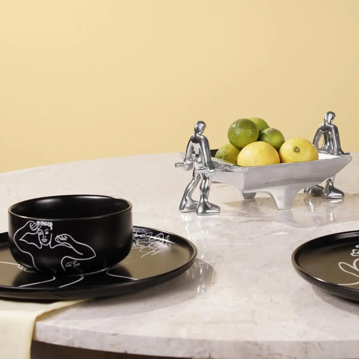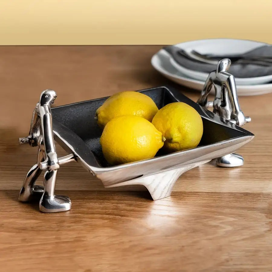 As the name suggests, 'men at work', is inspired by a spirit of synergy and connection. A fruit bowl or decor piece, you decide. This iconic Dish is made of cast aluminium and supported by two sculptural figures.