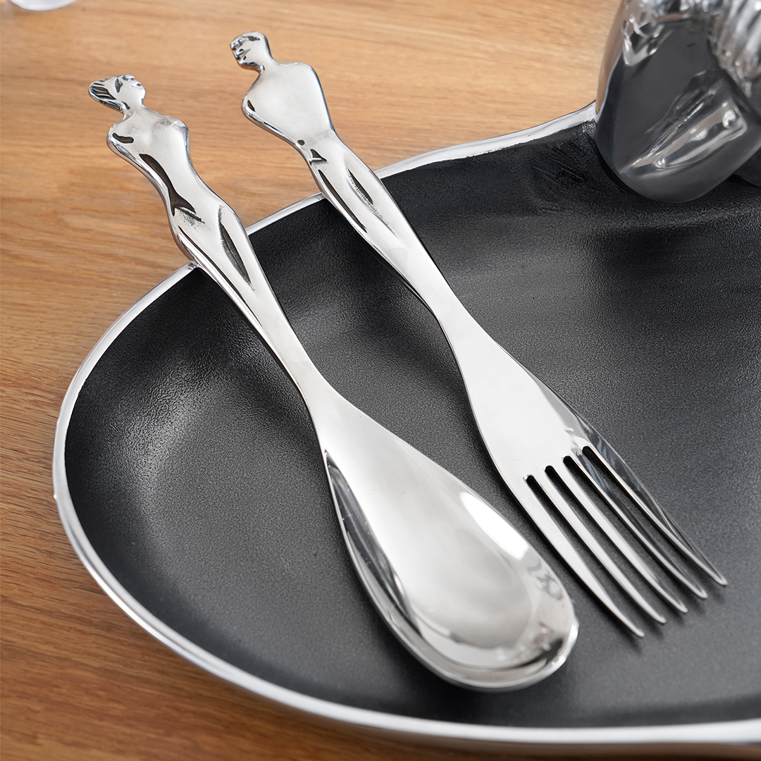 The Soul Mates salad servers are an eloquent combination of craftsmanship and design. Crafted from stainless steel, these servers are suited to serving salads and side dishes at formal occasions.